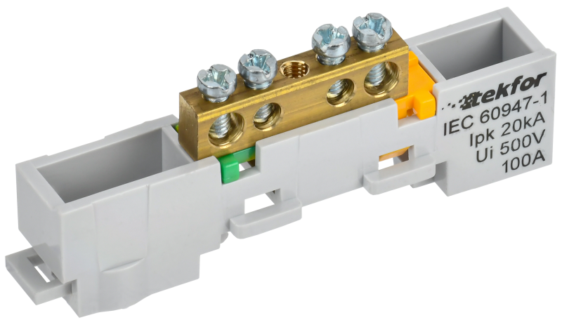 - IEK TEKFOR Шина PE земля неизолированная на универсальном держателе 6х9-4-Ж (TF-NN10-04-DL-K05)
