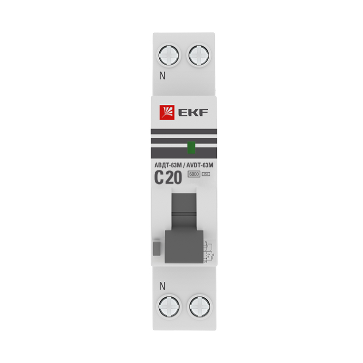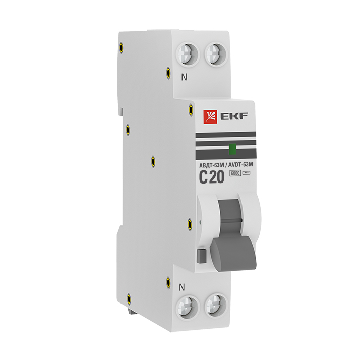 - EKF Дифференциальный автомат АВДТ-63М 20А/10мА (1мод., хар.C, электронный тип AС) 6кА EKF PROxima (DA63M-20-10)