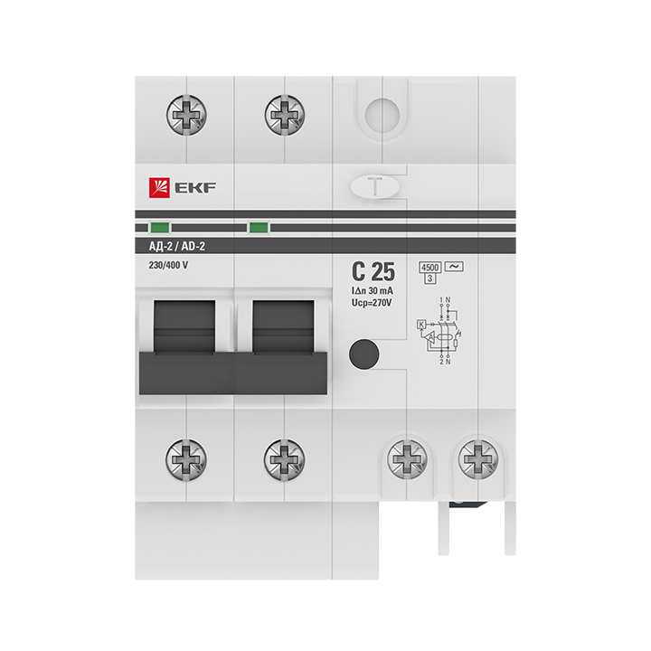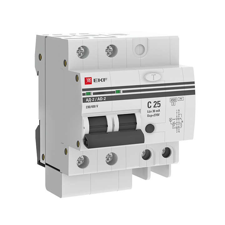 - EKF Выключатель автоматический дифференциальный АД-2 2п 25А 30мА С PROxima (DA2-25-30-pro)