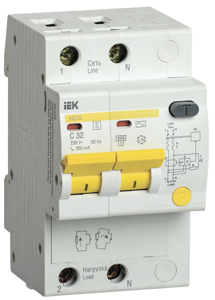 - IEK Выключатель автоматический дифференциальный АД12S 2Р 32А 300мА (MAD13-2-032-C-300)