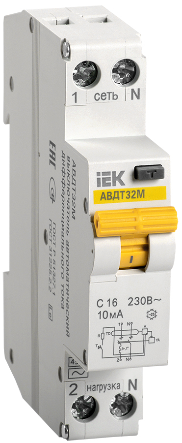 - IEK Выключатель автоматический дифференциальный АВДТ-32M C16 10мА (Электронный) (MAD32-5-016-C-10)