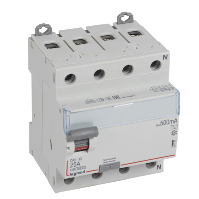 - LEGRAND Выключатель дифференциального тока (УЗО) DX3 4П 25А АC 500мА N справа (411732 )