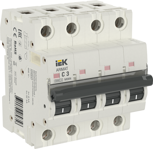- IEK ARMAT Выключатель автоматический четырехполюсный C 3А M06N (AR-M06N-4-C003)