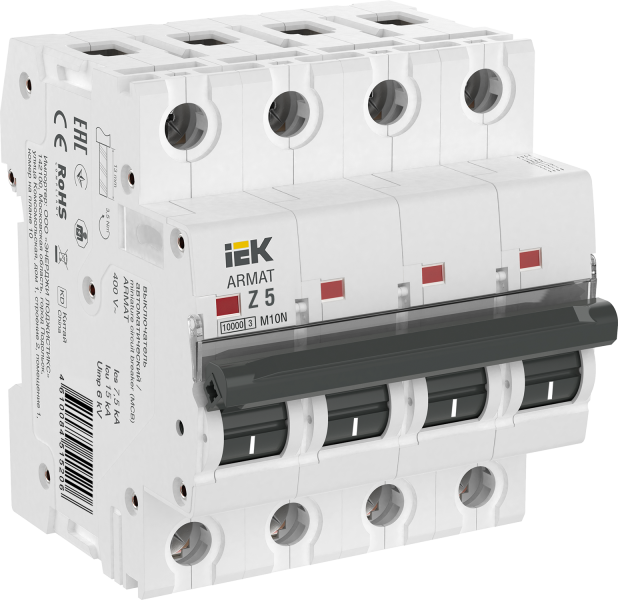 - IEK ARMAT Выключатель автоматический четырехполюсный M10N Z 5А (AR-M10N-4-Z005)