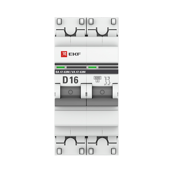 - EKF Автоматический выключатель 2P 16А (D) 6кА ВА 47-63M c одним магнитным расцепителем (mcb4763m-6-2-16D-pro)