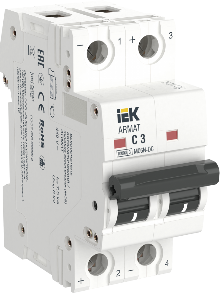 - IEK ARMAT Автоматический выключатель M06N-DC 2P C 3А IEK (AR-M06N-2-C003DC)
