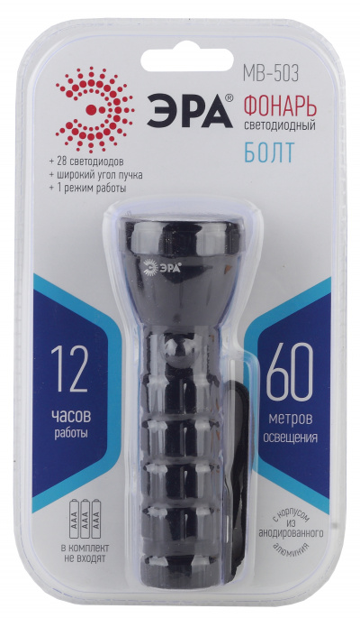 - ЭРА MB-503 Фонарь универc. Болт [28xLED, 2,5Вт, алюм, 3хААА, бл] (12/72/576) (Б0030195)