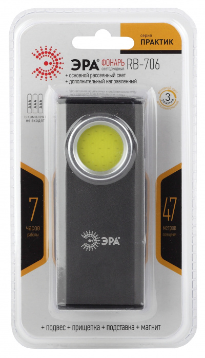 - ЭРА RB-706 Фонарь Фонарь Практик [4Вт COB, SMD , магнит, подвес, подставка, 3xAAA, бл] (10/60/9 (Б0039622)