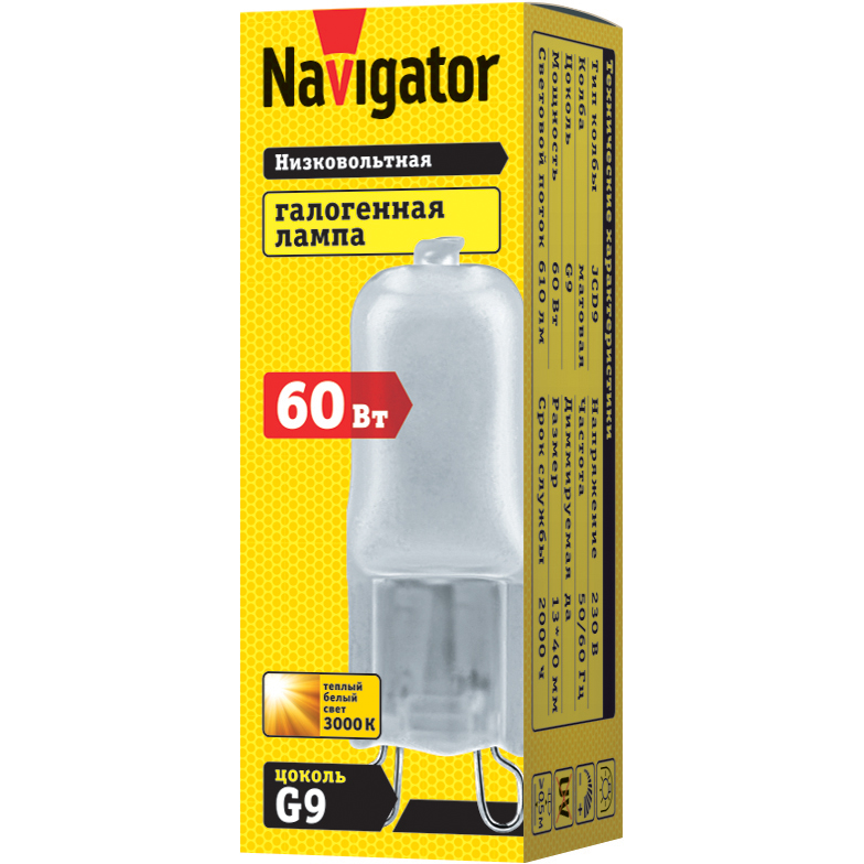 - NAVIGATOR Лампа галогенная КГМ 60вт 220в G9 капсульная матовая (94233 NH-JCD9) (15255)