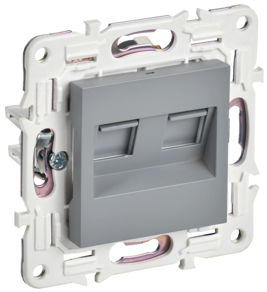 - IEK SKANDY Розетка компьютерная двойная RJ45 кат.5E SK-K03Gr серый (SK-K20-1-K03)