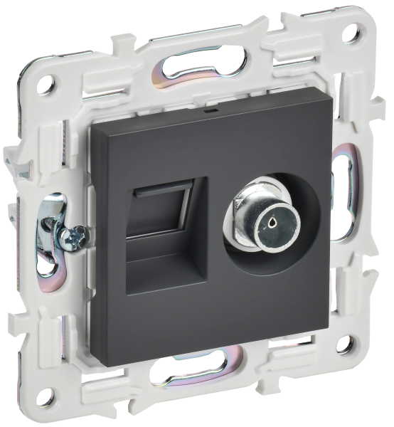 - IEK SKANDY Розетка двойная TV+RJ45 кат.5E SK-A14T титан (SK-AK20-1-K48)