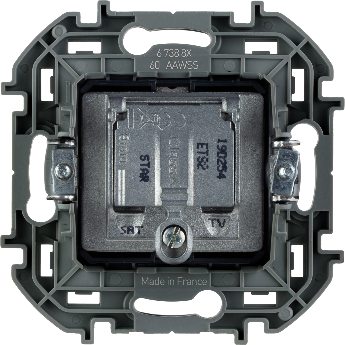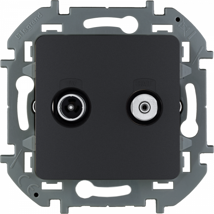 - LEGRAND INSPIRIA Розетка телевизионная-спутниковая для скрытого монтажа, для схемы "звезда", 1.5 дБ 4-2400 МГц / 2 дБ 4-2400 МГц, поддержка обратного питания для активных антенн до 500мА, цвет "Антрацит" (673883)