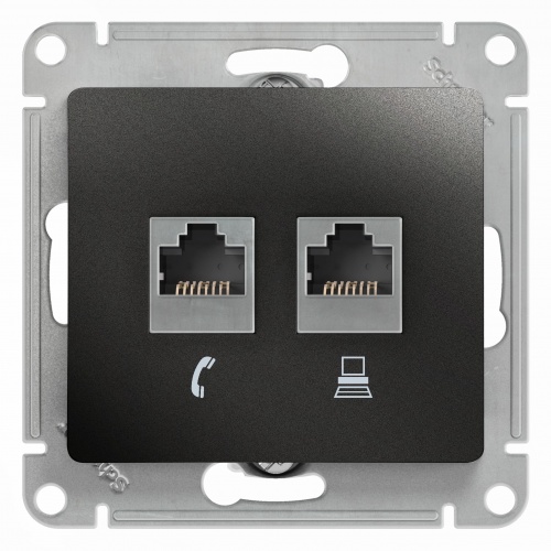 - SCHNEIDER ELECTRIC GLOSSA Розетка двойная RJ11+RJ45 категория 5E антрацит в рамку (GSL000785)