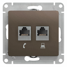 - SCHNEIDER ELECTRIC GLOSSA Розетка двойная RJ11+RJ45 категория 5E шоколад в рамку (GSL000885)