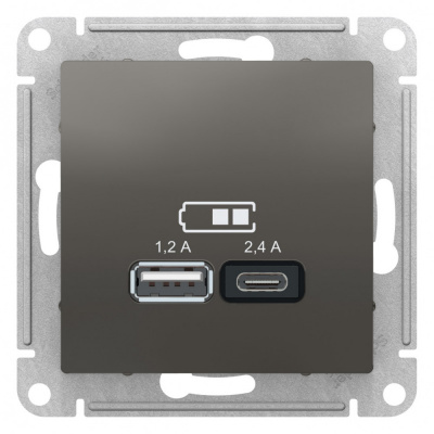 - SCHNEIDER ELECTRIC РОЗЕТКА USB ATLASDESIGN A+С, 5В/2,4 А, 2х5В/1,2 А, механизм, СТАЛЬ (ATN000939)