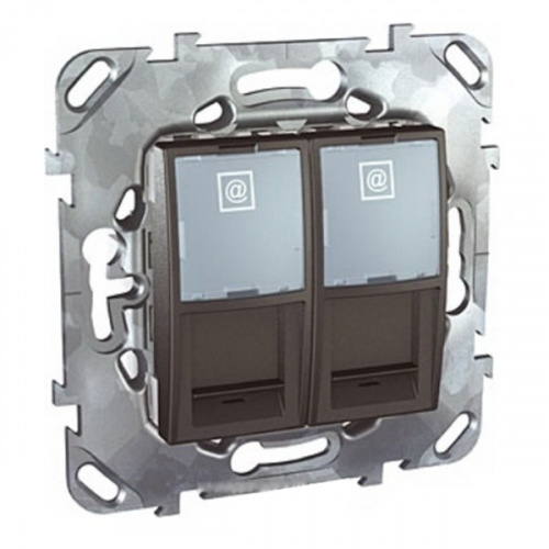 - SCHNEIDER ELECTRIC UNICAtop Розетка компьютерная 2хRJ45 в рамку антрацит (MGU5.2424.12ZD)
