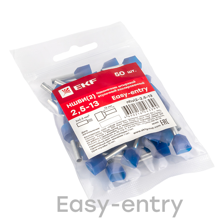 - EKF Наконечник штыревой втулочный НШвИ (2) 2,5-13 (50шт.) EKF (nhvi2-2.5-13)