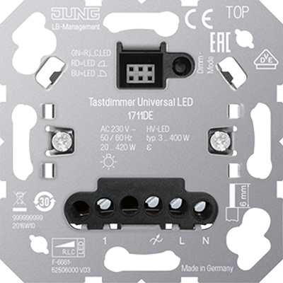 - JUNG Клавишный LED диммер универсальный с входом для спутниковых устройств. Механизм. (1711DE)