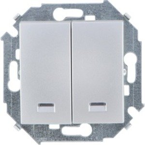 - SIMON Выключатель двухклавишный с подсветкой, 16А, 250В, винтовой зажим, алюминий (1591392-033)