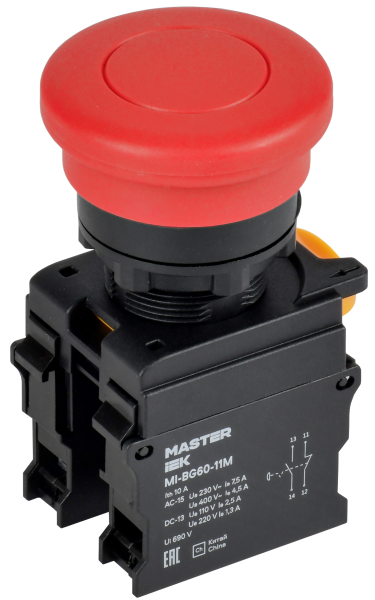 - IEK Кнопка ''Грибок'' с фиксацией d=22мм 1NO+1NC красная MASTER ' (MI-BG60-11M-3-21-K04)