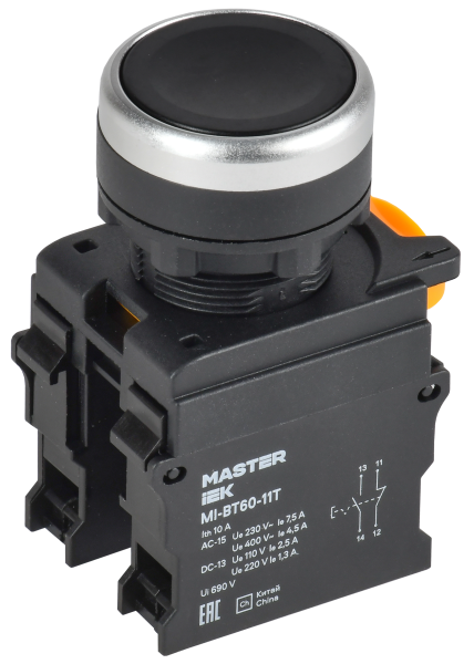 - IEK Кнопка с фиксацией d=22мм 1NO+1NC чёрная MASTER (MI-BT60-11T-3-21-K02)