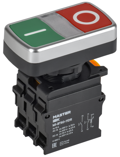 - IEK Кнопка ''I-O'' с подсветкой d=22мм 1NO+1NC MASTER ' (MI-BT60-11DR-3-11-K51)