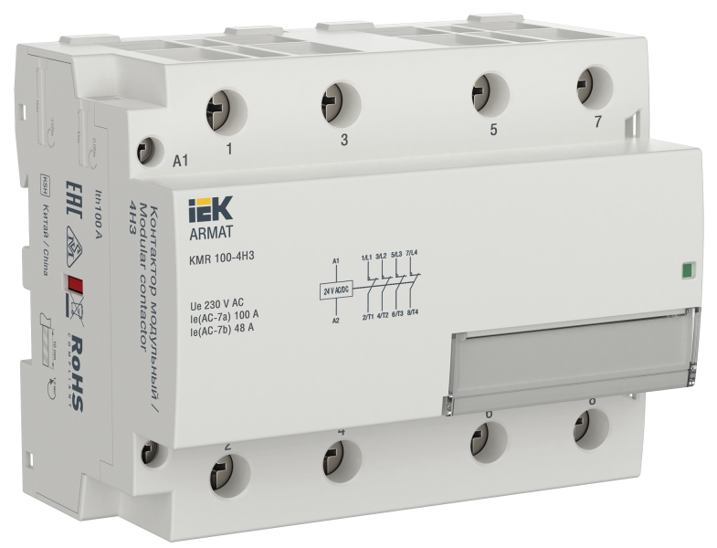 - IEK ARMAT Контактор модульный KMR 100А 24В AC/DC 4НЗ (AR-KMR20-100-04-024)