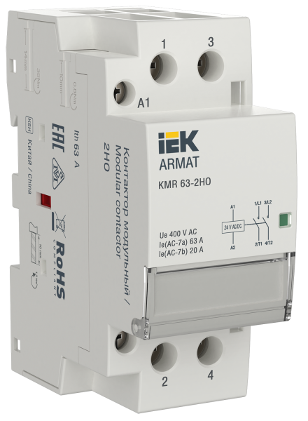 - IEK ARMAT Контактор модульный KMR 63А 24В AC/DC 2НО (AR-KMR20-063-20-024)