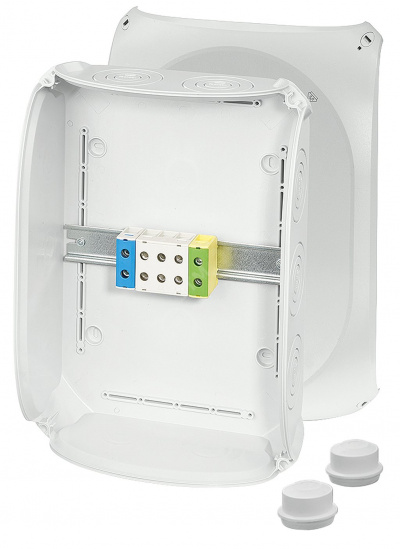 - HENSEL Коробка клеммная 5-полюсная 1.5-50 кв.мм Al/Cu 355х255х122 PC IP66 серая (KF 5050 A)