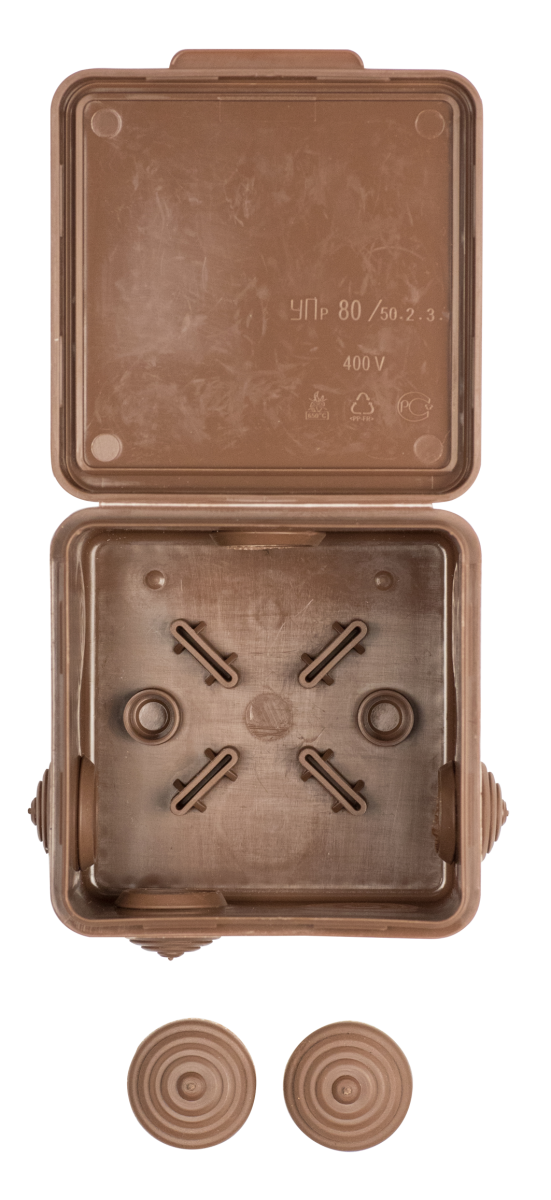 - EKF Коробка распаячная КМР-030-031 с крышкой (83х83х54) 7 мембранных вводов тёмное дерево IP54 PROx (plc-kmr-030-031-t)