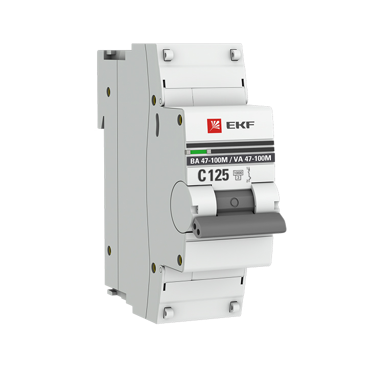- EKF Автоматический выключатель 1P 125А (C) 10kA ВА 47-100M с электромагнитным расцепителем PROxima (mcb47100m-1-125C-pro)