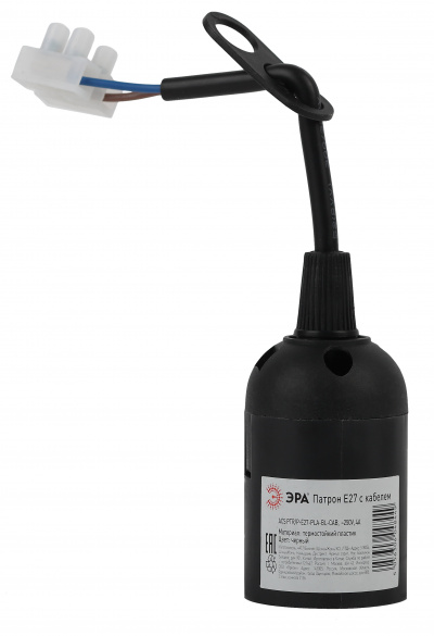 - ЭРА Патрон Е27 с клеммной колодкой,пластик,черный (50/200/6000) (Б0043677)