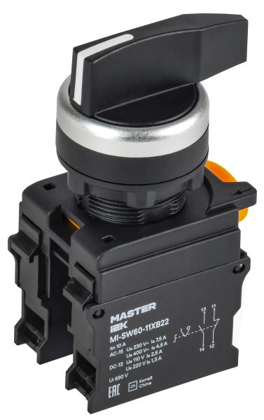 - IEK Переключатель длинная ручка на 2 положения возвратный 1NO+1NC MASTER (MI-SW60-11XB22-3-25-2-K02)