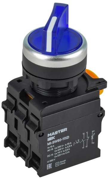 - IEK Переключатель с подсветкой на 2 положения 1NO+1NC синий MASTER (MI-SW60-11XD-3-14-2-K07)