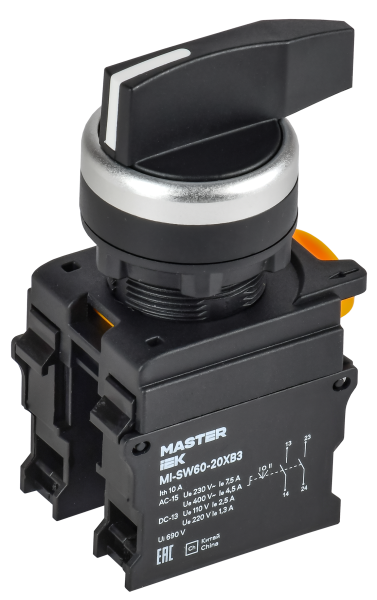 - IEK Переключатель длинная ручка на 3 положения 2NO чёрный MASTER (MI-SW60-20XB3-4-25-3-K02)