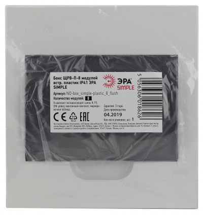 - Бокс ЩРВ-П-8 модулей встр.пластик IP41 ЭРА SIMPLE (Б0041511)