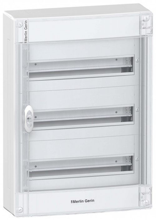 - SCHNEIDER ELECTRIC Pragma Щит распределительный навесной ЩРн-72 IP40 пластиковый белый прозрачная дверь (по 24 модуля) (PRA29324)