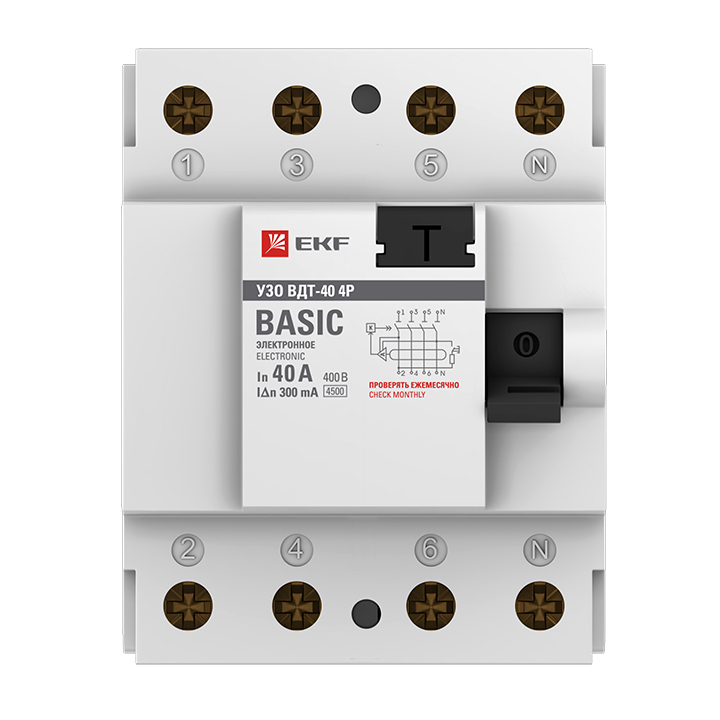 - EKF Устройство защитного отключения УЗО ВД-40 4P 40А/300мА (электронное) Basic (elcb-4-40-300e-sim)