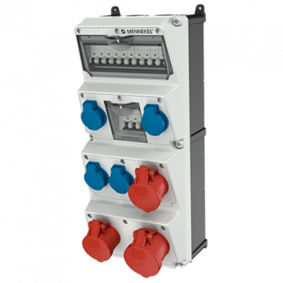 - MENNEKES Комбинация розеток AMAXX 1 розетка CEE 32A 5п 400В/ 2 розетки CEE 16A 5п 400В/ 4 розетки SCHUKO 16A 230В (940012)