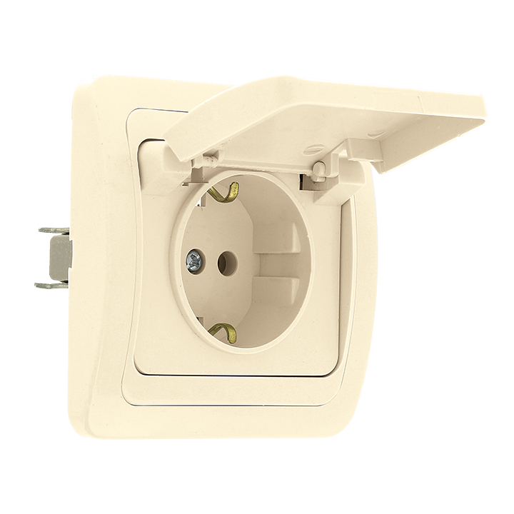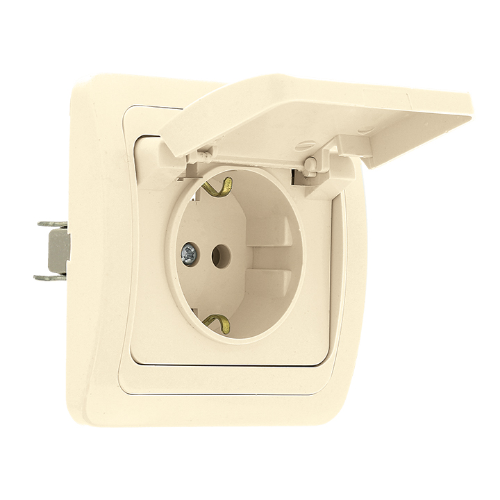 - EKF Лондон Розетка с заземлением и крышкой 16А бежевая (EER16-029-20)