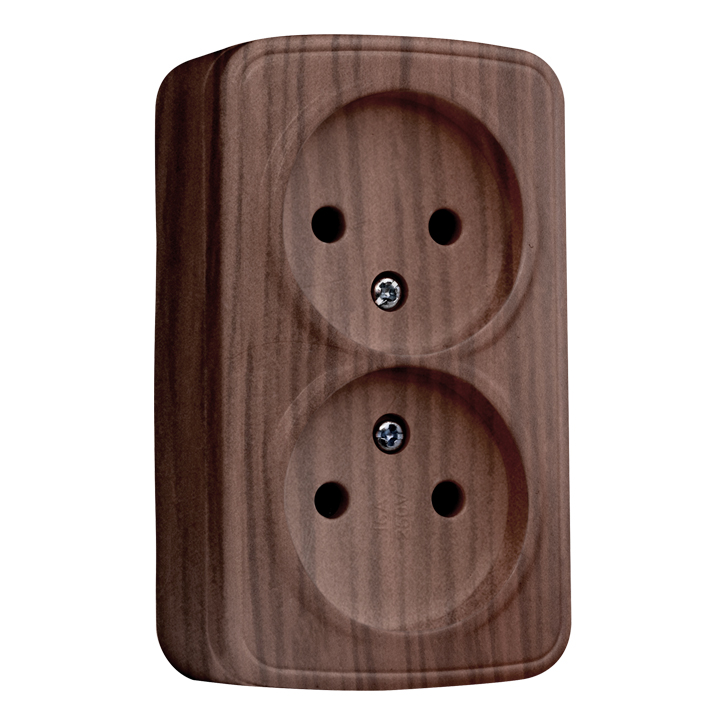 - EKF Розетка 2-местная ОП Минск 10А без заземления темное дерево (EGR10-102-40)