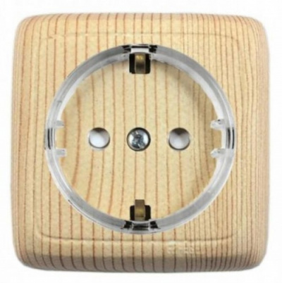 - HEGEL Розетка наружная с заземлением с изоляционной пластиной со шторками (стакан) сосна (РА16-174-02)