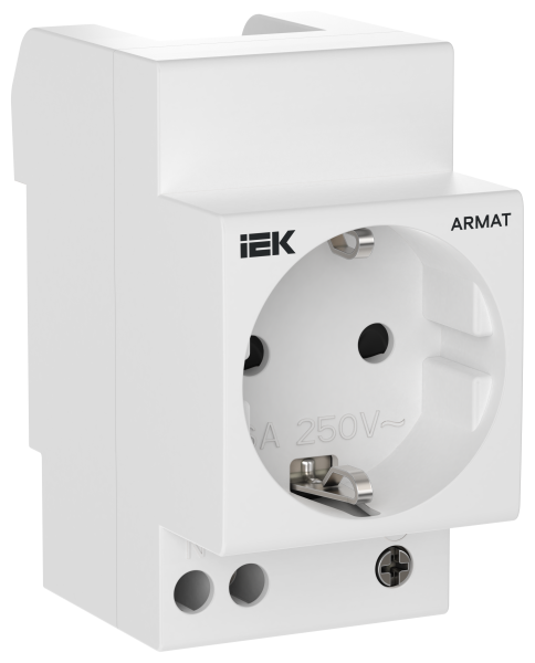 - IEK ARMAT Розетка на DIN-рейку 45мм с заземлением с защитными шторками 16А (AR-SOD-G-GND-S-016)
