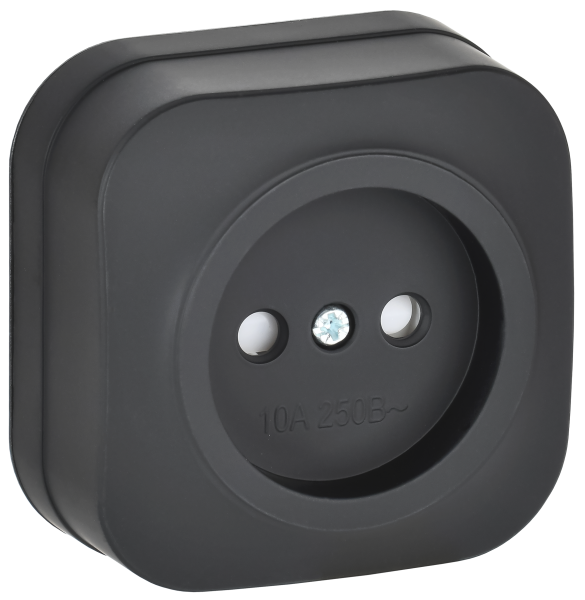 - IEK GLORY Розетка 1-местная для открытой установки без заземления с защитными шторками 10А РСш20-2-ХЧм черный матовый (ERH13-K02M-10)