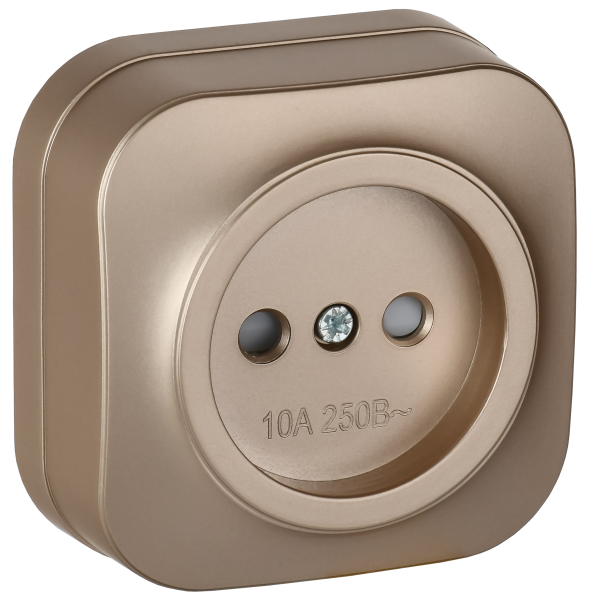 - IEK GLORY Розетка 1-местная для открытой установки без заземления с защитными шторками 10А РСш20-2-ХШм шампань матовый (ERH13-K37M-10)