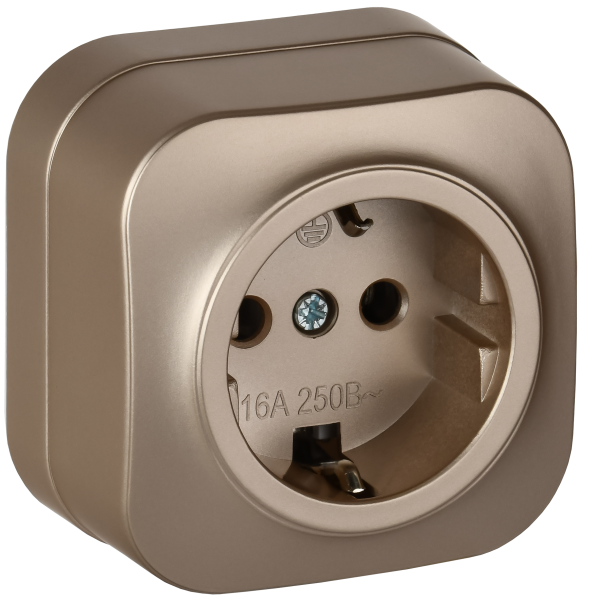 - IEK GLORY Розетка 1-местная для открытой установки с заземлением без защитных шторок 16А РС20-3-ХШм шампань матовый (ERH11-K37M-16)