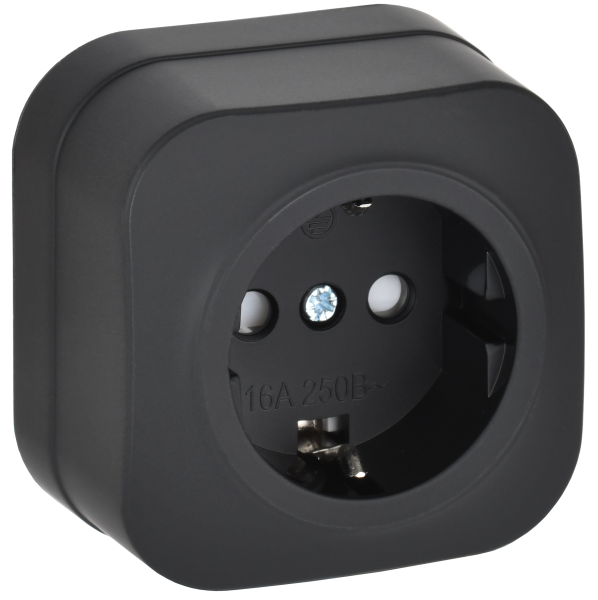 - IEK GLORY Розетка 1-местная для открытой установки с заземлением с защитными шторками 16А РСш20-3-ХЧм черный матовый (ERH14-K02M-16)
