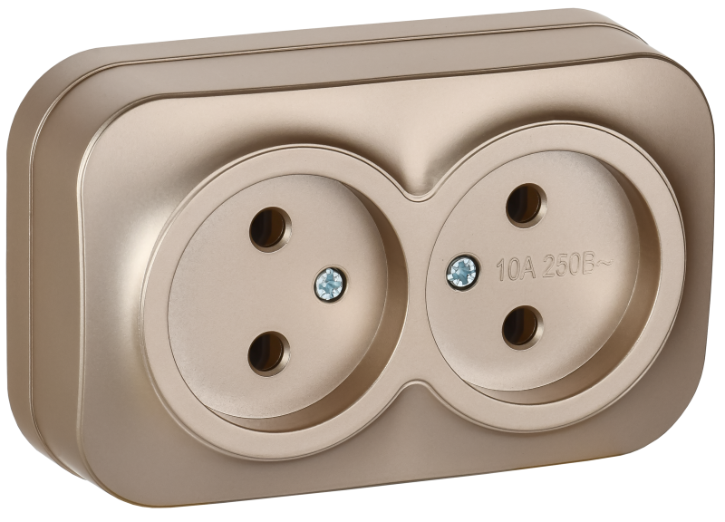 - IEK GLORY Розетка 2-местная для открытой установки без заземления без защитных шторок 10А РС22-2-ХШм шампань матовый (ERH20-K37M-10)