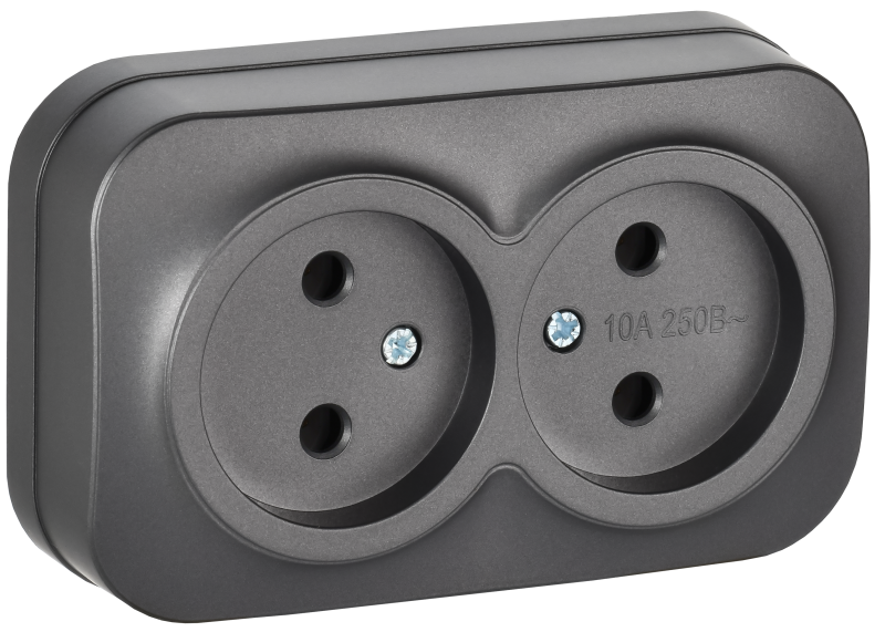 - IEK GLORY Розетка 2-местная для открытой установки без заземления без защитных шторок 10А РС22-2-ХСм сталь матовый (ERH20-K46M-10)
