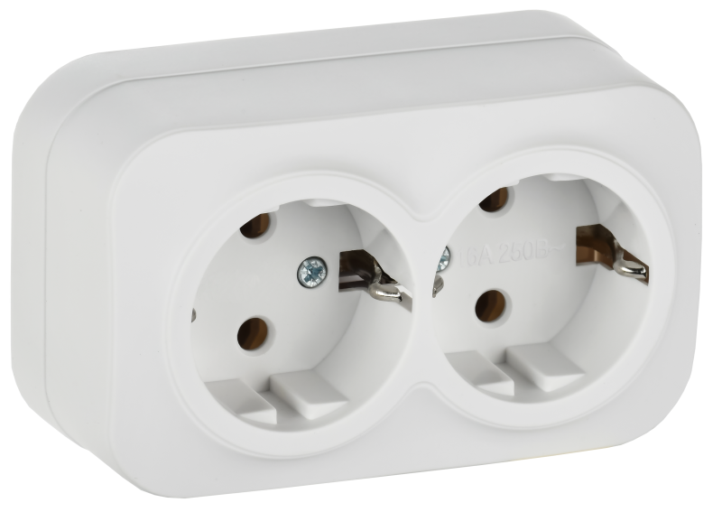 - IEK GLORY Розетка 2-местная для открытой установки с заземлением без защитных шторок 16А РС22-3-ХБм белый матовый (ERH21-K01M-16)